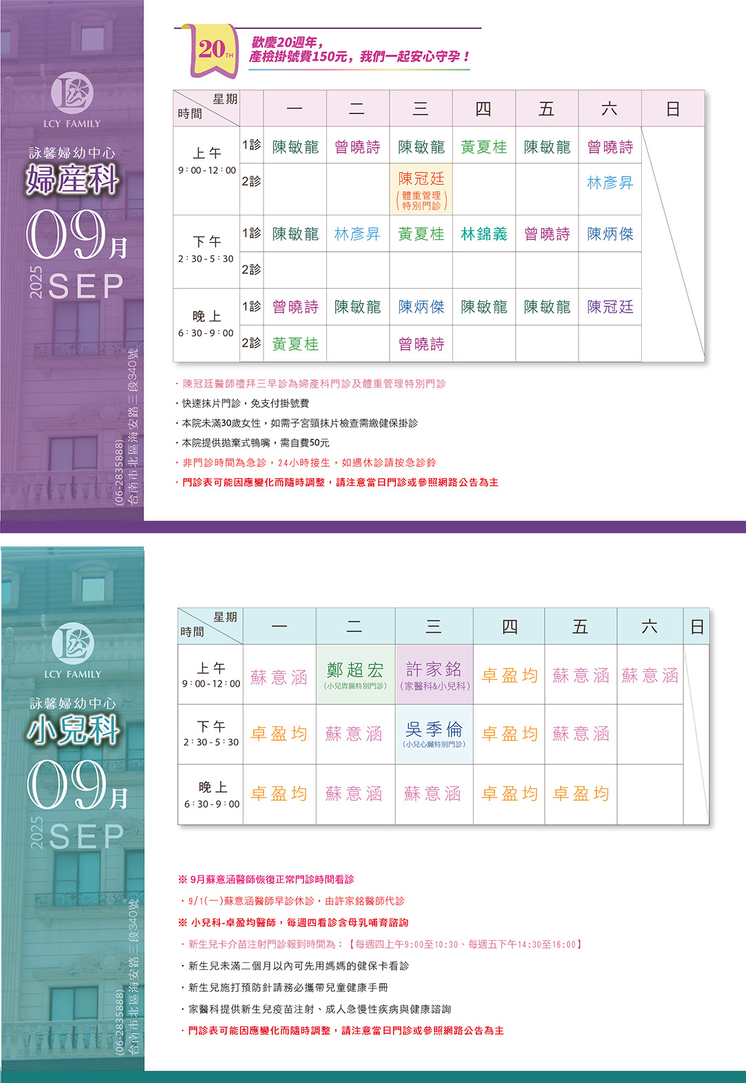 ● 詠馨婦幼中心 ─ 小兒科門診異動
