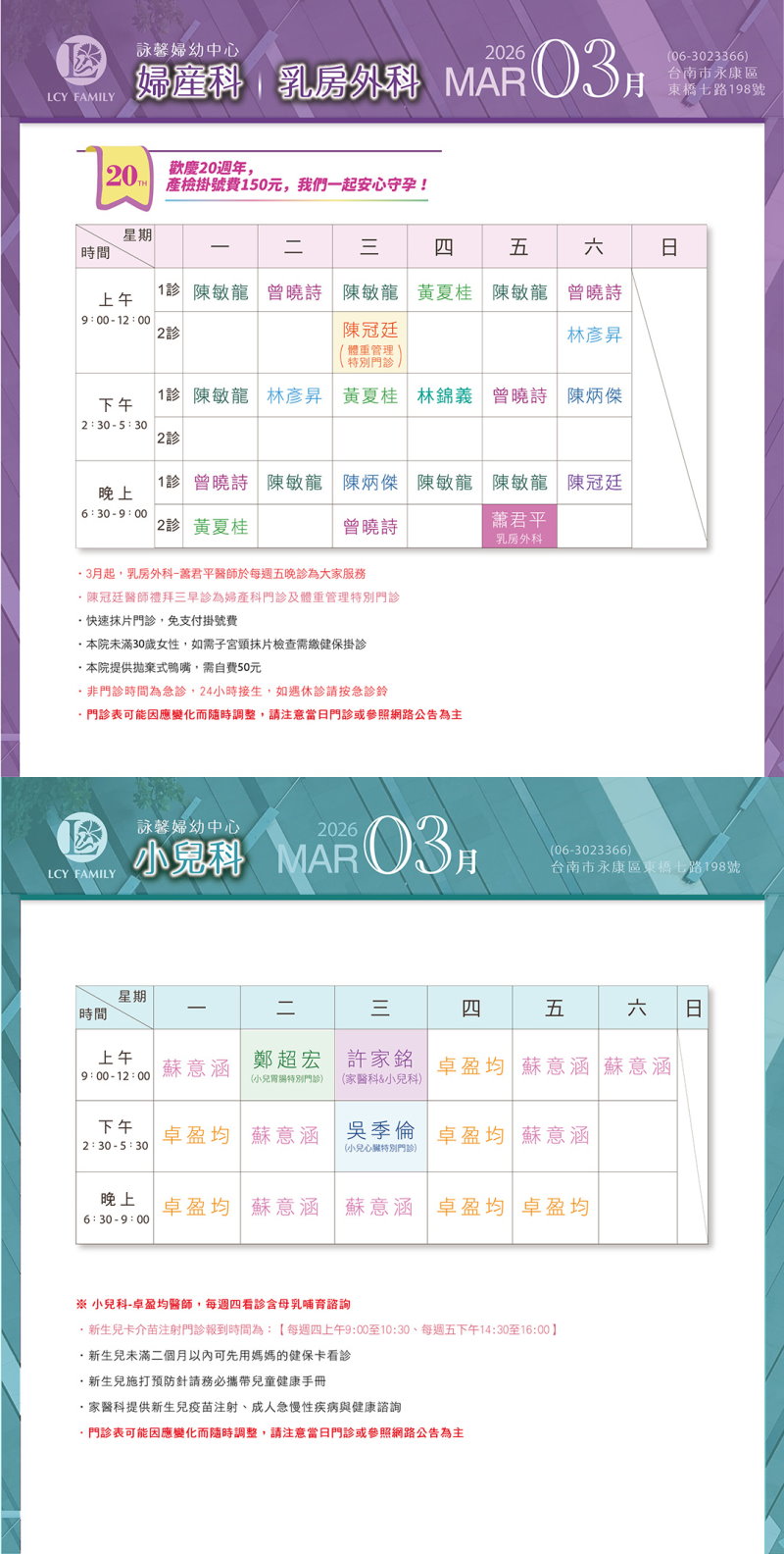 2026年3月份門診時間來囉! 如有相關問題,歡迎前來預約唷!